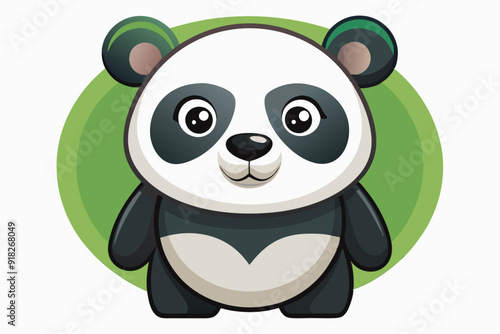 © nurdesign99, Fototapeta premium A Cartoon Panda Bear with Green Ears and a Smiling Face