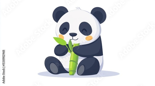 © Santai, Fototapeta premium A cartoon panda is sitting and eating some bamboo on a white background illustration