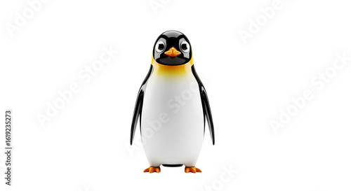© Rhomaidhi, Fototapeta premium A cartoon penguin stands facing forward against a white background.