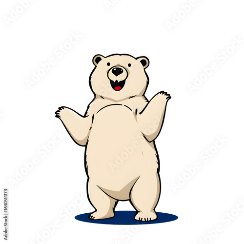 © ERIK, Obraz premium A cartoon polar bear is standing on a blue background and is smiling