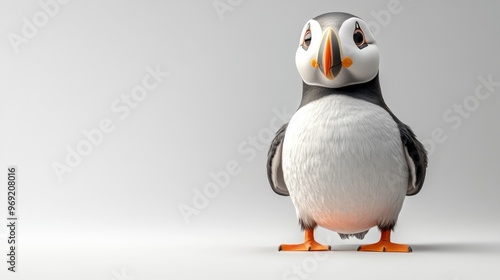 © Lena, Obraz premium A Cartoon Puffin Standing Against a White Background