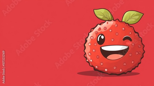 © Galib, Fototapeta premium A cartoon rambutan with a smiling face on a red background.
