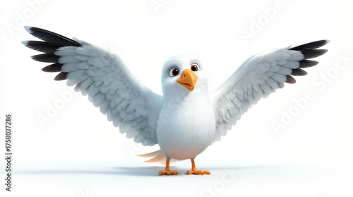 © WisChi, Fototapeta premium A cartoon seagull with its wings spread wide and looking directly at the camera isolated on a white background