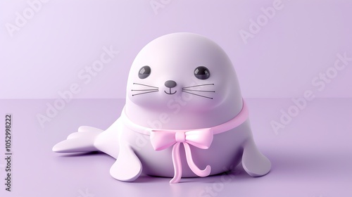 © Galib, Obraz premium A cartoon seal with a pink bow on a purple background.