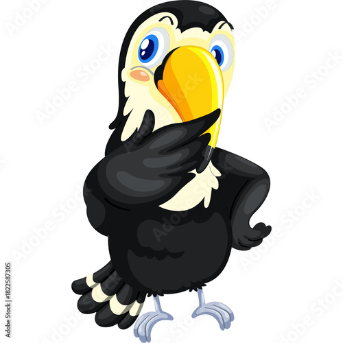 Obraz premium A Cartoon Toucan Bird with a Large Yellow Beak and Blue Eyes Stands on Its...