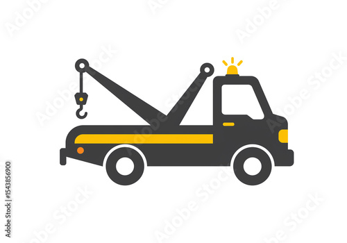 © Kinza, Naklejka premium A cartoon tow truck in black and yellow with a hook and light on a white background isolated image