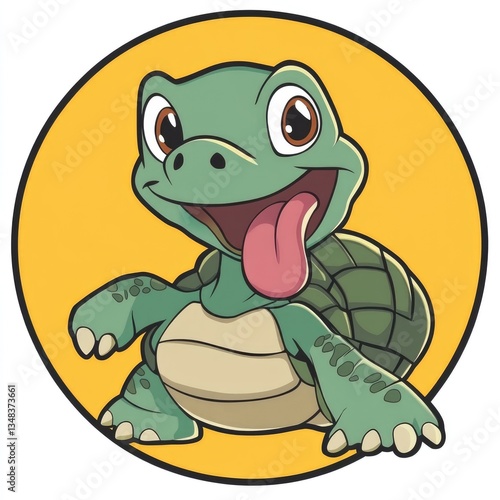 Fototapeta premium A cartoon turtle with a large smiling expression and pink tongue