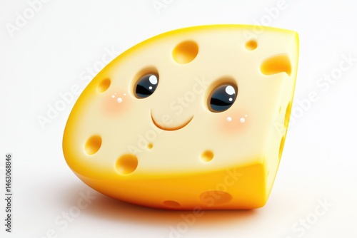 © Amal, Fototapeta premium A cartoon wedge of Swiss cheese with a cute smiley face on a plain white background.