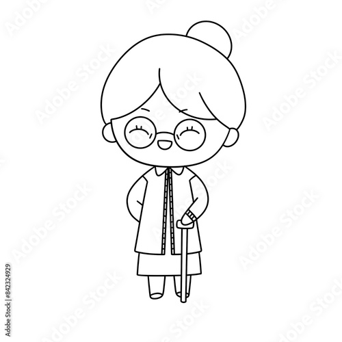 © iJstock, Obraz premium A cartoon woman with a cane and glasses