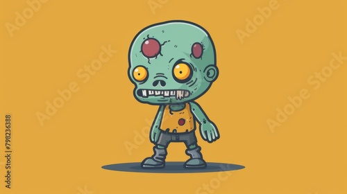 Fototapeta premium A cartoon zombie with yellow eyes and a big smile, AI