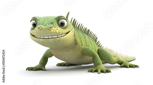 © Jawad, Fototapeta premium A cartoonish green lizard with big eyes sits on a white background.