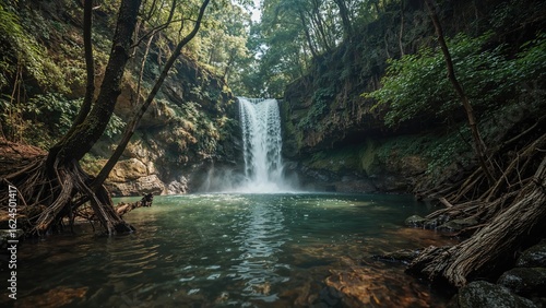 © The 2R Artificiality, Fototapeta premium A cascade surrounded by dense woodland
