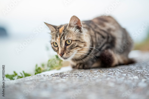© Krasi Kanchev, Obraz premium A cat portrait close up, relaxing outside.