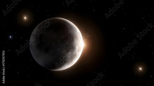 Fototapeta premium A celestial body partially illuminated by a distant light source set against...