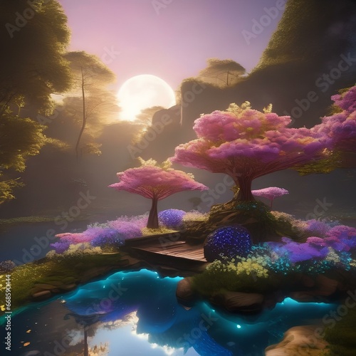 Fototapeta premium A celestial, floating island adorned with glowing flowers that bloom only at night4