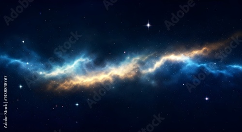 Fototapeta premium A celestial gradient with deep indigo, gold, and cosmic dust, Ai Generated
