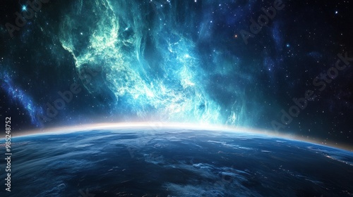Fototapeta premium A Celestial Landscape: Earth and a Cosmic Nebula