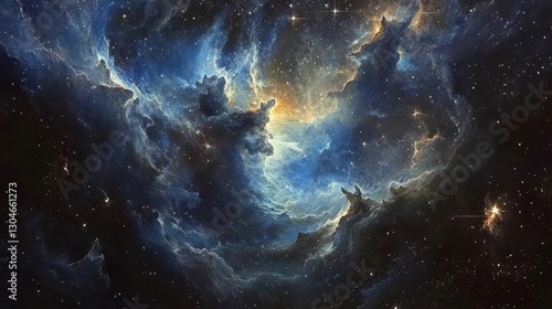 © javier, Fototapeta premium A celestial oil painting backdrop with indigo tones and silver highlights blending into a dreamy scene
