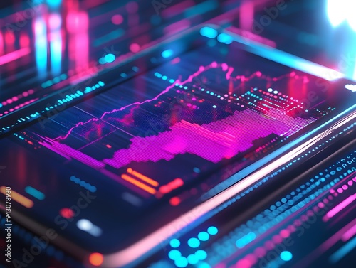 © Nalinthip, Obraz premium A cell phone screen shows a graph of a stock market