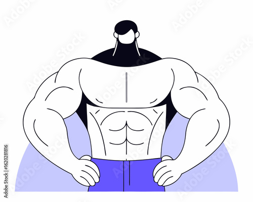 Fototapeta premium A centered, line art silhouette of a muscular man. He is an adult male,...
