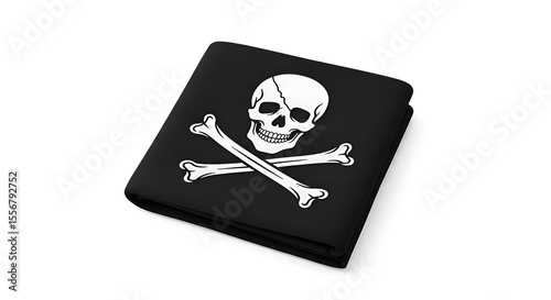 © Photqeey, Obraz premium A centered pirate flag folded neatly, showing skull and crossbones, on white