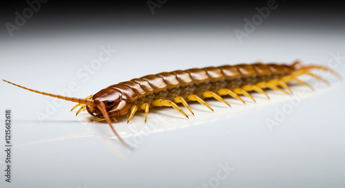 © Amir, Obraz premium a centipede is swirling around wooded stick in minimal white background