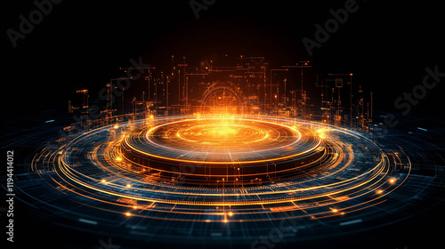 © Alex Alex, Obraz premium A central platform surrounded by concentric circles that resemble a user interface or flow chart.