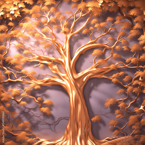 Obraz premium A central stylized tree with golden leaves