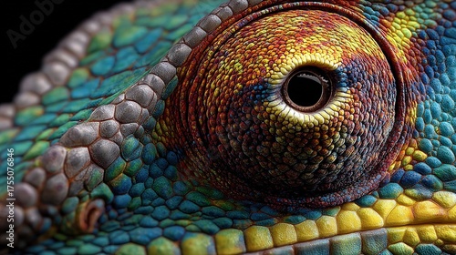 © Anna, Obraz premium a chameleon's eye, offering sharp focus on its body and head