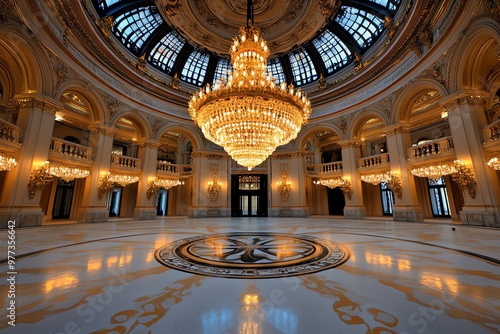 Obraz premium A chandelier sparkling in an opulent ballroom, casting soft light across the...