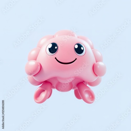 © avissarahmanita, Naklejka premium A charming adorable illustration of a pink plush toy cute and playful with a light pastel blue background depicting character like features. The jellyfish-like creature is rendered in a plastic style