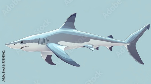 Naklejka premium A charming and playful illustration of a hammerhead shark with a flat, cartoon style. The shark is depicted swimming with a friendly expression, conveying a sense of curiosity and wonder. It represent