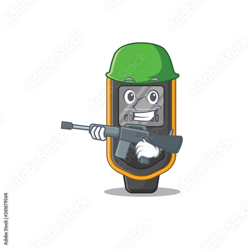 Fototapeta premium A charming army dive computer cartoon picture style having a machine gun