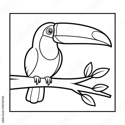 Fototapeta premium A charming black and white illustration of a toucan perched on a tree branch...