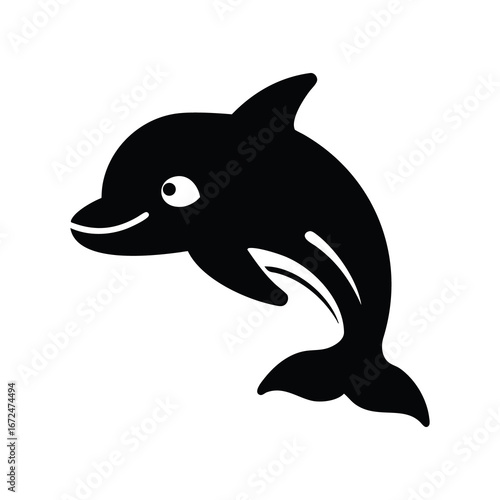 Fototapeta premium A charming black silhouette of a happy dolphin with a big smile isolated on...