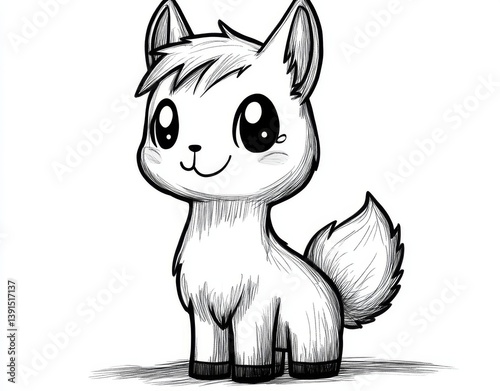 Fototapeta premium A charming cartoon alpaca is illustrated as a humorous animal doodle in a...