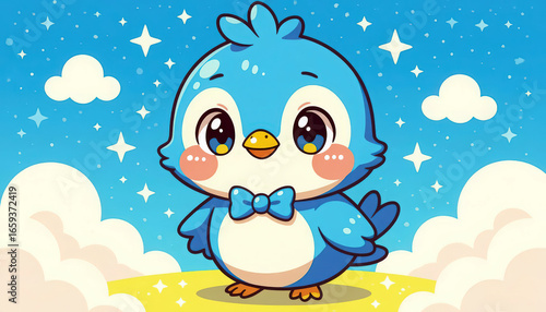 Fototapeta premium A charming cartoon bird character with bright colors, playful details, and an...