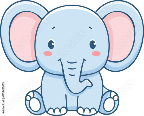 Naklejka premium A charming cartoon elephant with big ears and a friendly smile, sitting.
