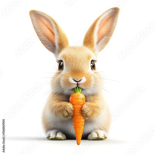© Raksnalee, Obraz premium A charming, cartoonish baby bunny is depicted against a plain white background.