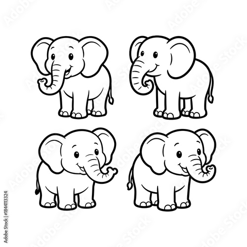 © axolotel, Naklejka premium A charming collection of adorable cartoon baby elephant outlines, perfect for children's coloring books, playful animal-themed designs, or fun educational art projects, featuring four distinct, endear