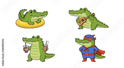 Fototapeta premium A charming collection of cute cartoon alligator mascots in various fun poses and costumes