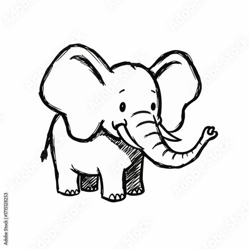 Fototapeta premium A charming hand-drawn sketch of a baby elephant with large ears and a playful trunk.