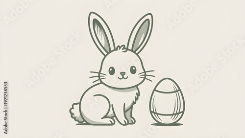 Fototapeta premium A charming, hand-drawn style bunny sits beside a patterned egg.