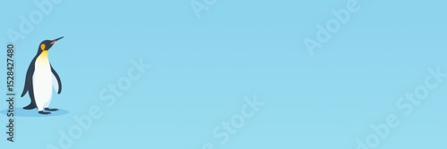 Fototapeta premium A charming illustration of a solitary penguin against a serene blue...