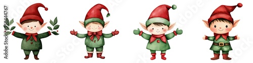 Fototapeta premium A charming illustration of four whimsical elves wearing red hats, perfect for...