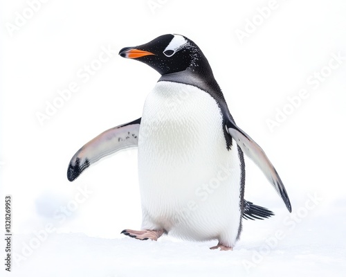 © Idea Library, Obraz premium A charming penguin standing alone on the snowy landscape under the bright clear sky of winter