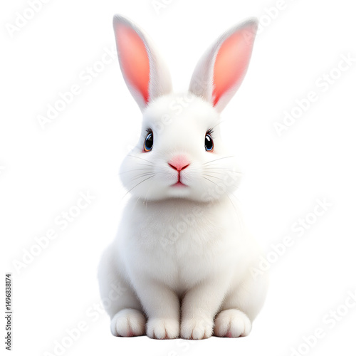 © D, Obraz premium A charming portrait of a fluffy white bunny rabbit with pink inner ears