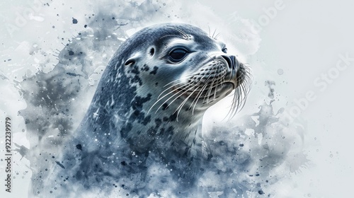 Obraz premium A charming seal in detailed watercolor, showcasing its facial features and fur. The white background enhances its elegance.