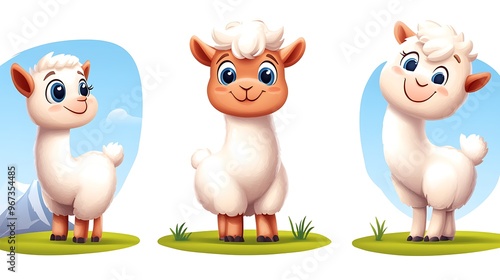 Fototapeta premium A charming set of cartoon alpacas in playful and quirky poses, great for South American and mountain-themed illustrations.