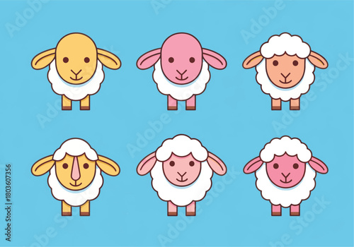 © Precision CAD System, Obraz premium A charming set of colorful sheep characters in a flat vector illustration style